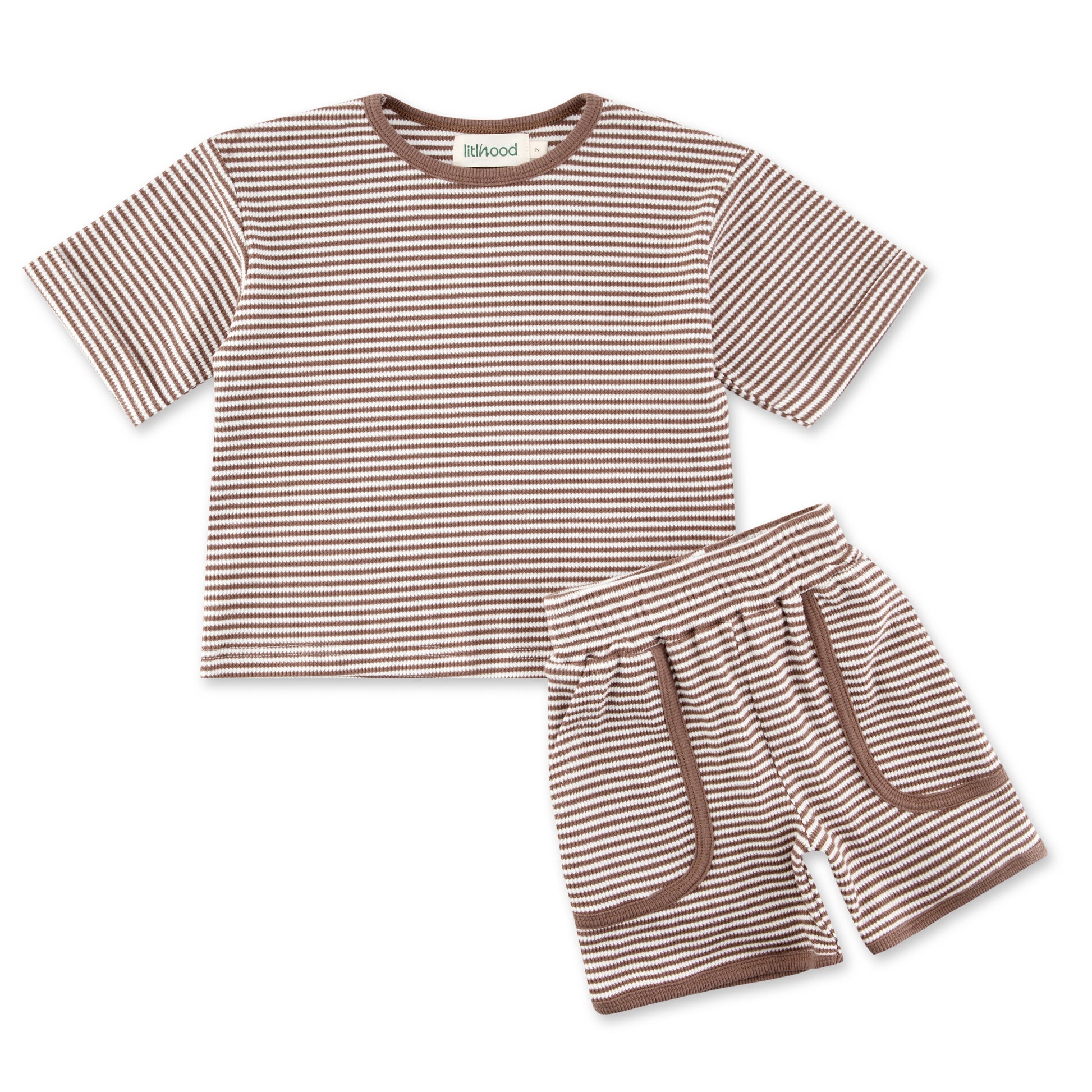 The subtle white and brown stripe pattern gives it a timeless, gender-neutral look, ideal for everyday wear or laid-back outings. Whether it's for babies or toddlers, this set is a go-to essential for ages 6 months to 4 years.